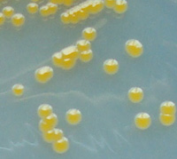 Extreme life forms, like these colonies of Chryseobacterium greenlandensis, may be living near the north pole of Mars. If you want to see the phoenix landing click on the picture of it.